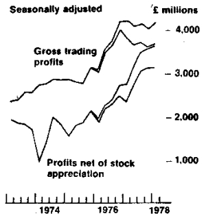 The Bank of England Quarterly Bulletin, for instance, shows the share of ‘historic profits’ as falling from 16-18 per cent in the 1940s and 1950s to 15-16 per cent in the 1960s to 12-13 per cent in the mid 1970s. And ‘real’ profits are shown as falling from 14-15 per cent of the national income right down to 4-6 per cent.