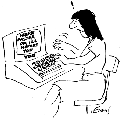 ‘All the natural breaks you get using a typewriter – when you change paper, shift the margin, move from one job to another – disappear, since the word processor does all these things for you at a very high speed. You still have to pay the same mental effort to each part of the task that remains to you, putting words together to make a grammatically sound sentence, and sentences together to make a complete piece of work.