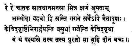 "O friend rain-bird, listen carefully for a moment (to my advice). There are many clouds in the sky, but they are not all alike. Some drench the earth with their downpour, and some just thunder in vain; don't beg pitifully from everyone that you see.