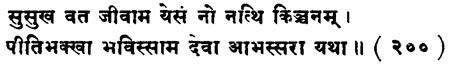 "Happily ,shall we live, those who have nothing at all; on the food of universal love, we have become like the abhassara gods." (At best V' 16, which is the only verse I can find of Buddhist type, has a very faint resemblance to this.) By contrast, Bhartrihari's can only be called "Ersatz- Entasgung". One should no longer be surprised on finding that this renunciation is not recommended for all: (V 67)