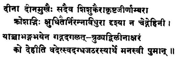 Nevertheless, I repeat, Bhartrihari is a great poet for what he does succeed in portraying. He is unmistakably the Indian intellectual of his period, limited by caste and tradition in fields of activity and therefore limited in his real grip on life. The only alternatives open to any member of his class seem to have been the attainment of patronage at court, or retirement to the life of an almsman. The inner conflict, the contradiction latent in the very position of this class, could not have been made clearer than by the poet's verses. This also explains the "popularity" of the verses themselves in the face of far superior and more philosophically inclined doctrine available in all Indian literary forms. That is, precisely this class was, and still is, interested in the preservation of Bhartrihari's poetry.