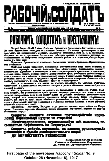 Soldiers, actively resist Kerensky the Kornilovite! Be on your guard!
