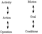 The [routine, practical] separation of [individual action and collective activities within human society] necessarily presupposes the possibility of the active subject's psychic reflection of the relation between the [general] objective motive and the [particular] object [i.e., goal] of the action. Otherwise the [particular] action... lacks any sense for its subject.... [p. 213]....