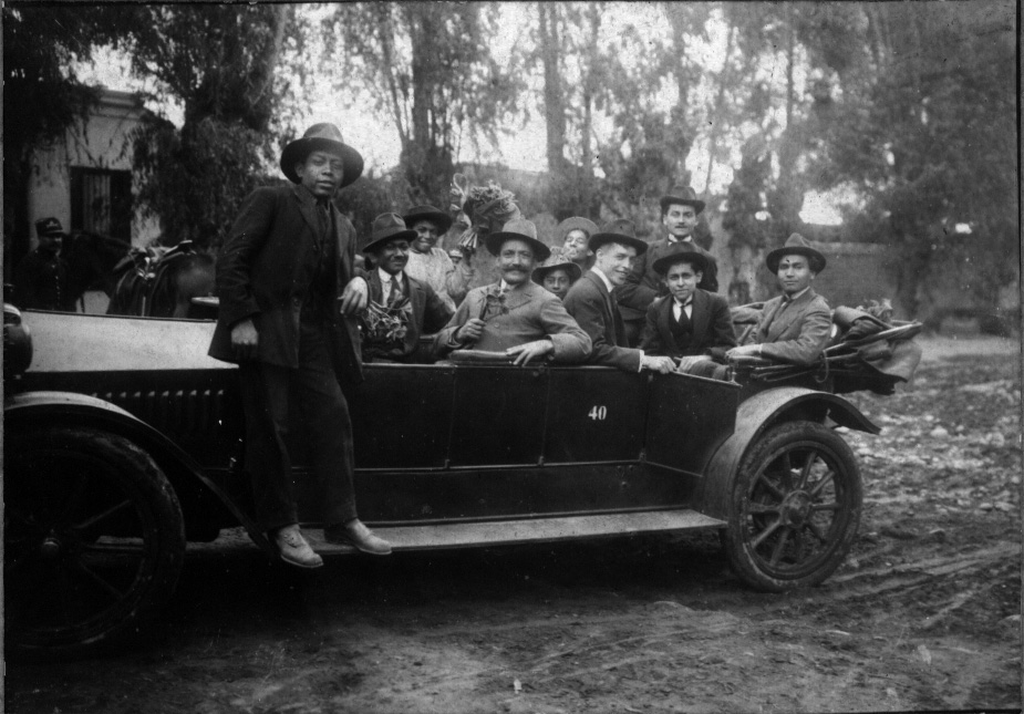 José Carlos, with friends, probably in or near Lima. Standing: Jorge del Prado. circa 1929 |