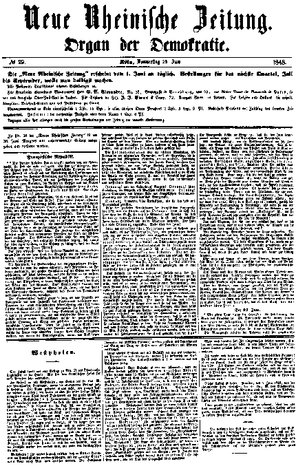Statement from the editorial board of Neue Rheinische Zeitung on the publication of the first issue, May 31, 1848