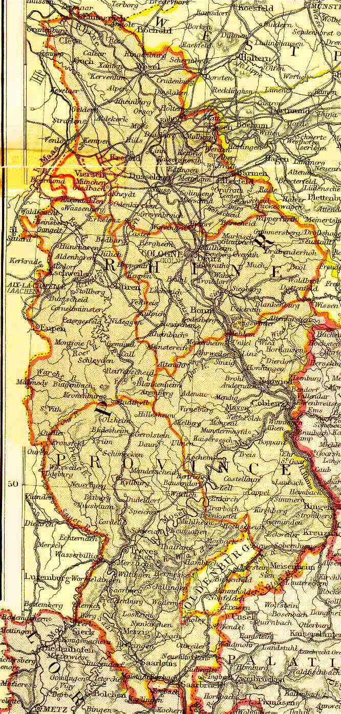 Rheinish Prussia: Province of Prussia, including the cities Bonn and Cologne to the North East, and Trier to the South West. Rheinish Prussia was the farthest Western province of Prussia, bordering France; named after the Rhein River, that runs through it.