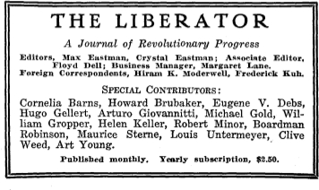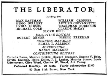 Source: Original copies of The Liberator from Tim Davenport (Corvallis, OR.), Riazanov Library Project (San Pablo, CA) and the Holt Labor Library (San Franicisco)