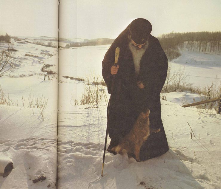 | A monk meditates. | A monk welds, in his effort to be more helpful to the church. |