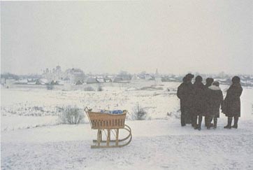 An estranged church stands alone among kilometers of cultivated land. (1980s) |