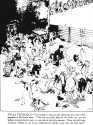 (first sentences illegible)..If the first Five-Year Plan turned out a splendid success, if collectivization has won glorious victories, if industrial production is growing at an unprecedented rate, the ruthless and at times almost savage way in which the Bolsheviks criticize themselves had a great deal to do with it. To take a nation of backward individualist peasants, and mould them within a short time into efficient, cultured, and responsible industrial workers and collective farmers is a collossal task. In this the Soviet writers and artists have played a magnificent part. Cartoons are proving a most powerful weapon in satirizing foibles and criticizing failures. Small wonder there has been an efflorescence of the art of cartooning in the Soviet Union. The six cartoons on these pages have been culled out from recent Societ publications--the Crocodile and the Projector. (note: one cartoon ommitted, distorted on the center crease.)